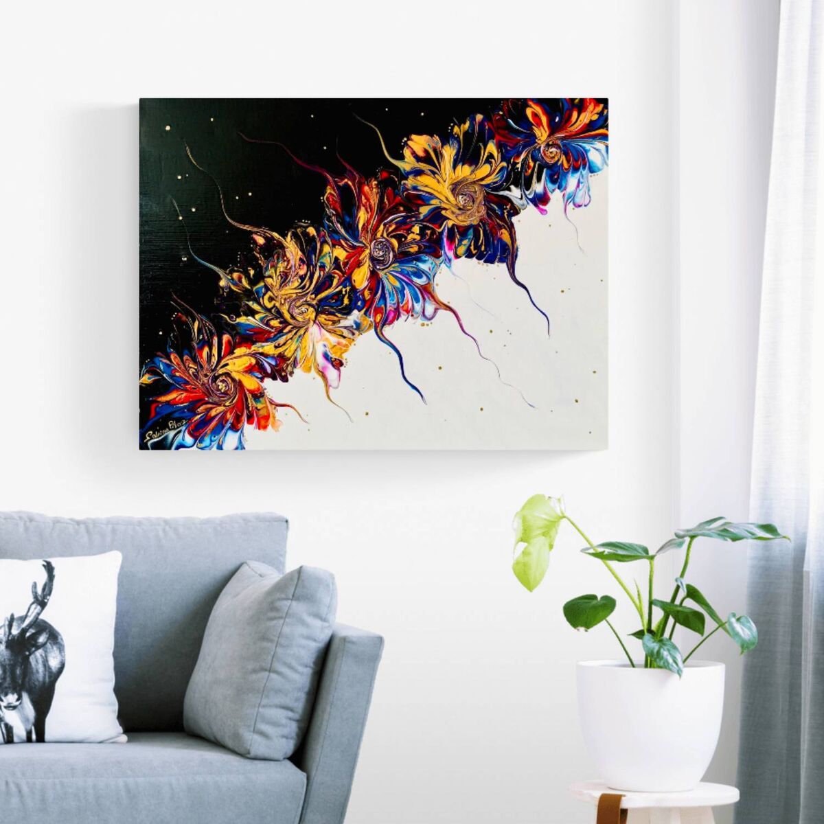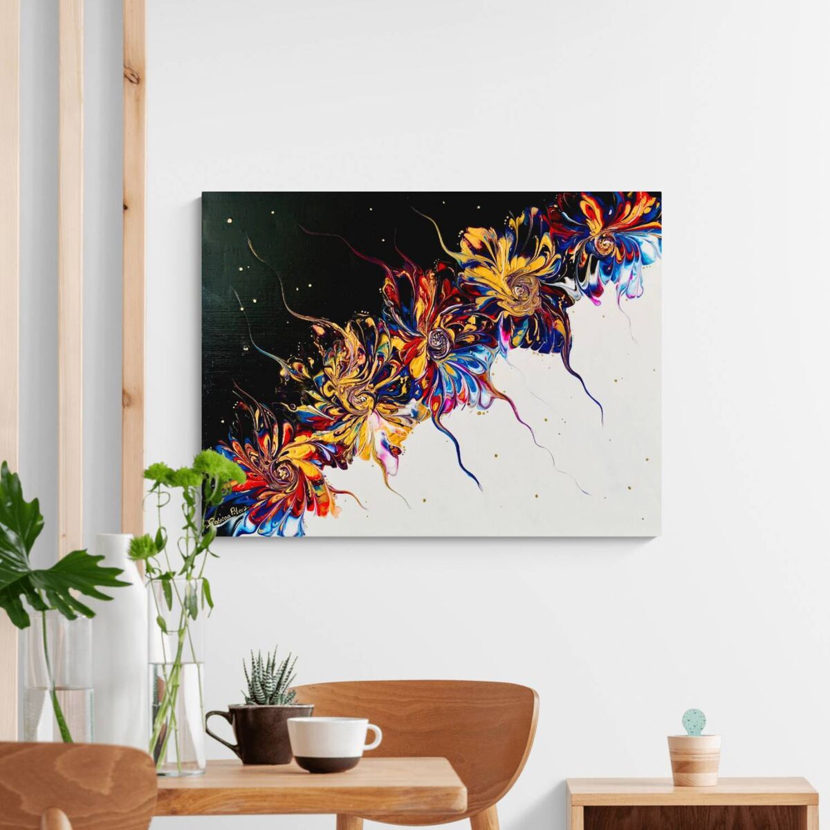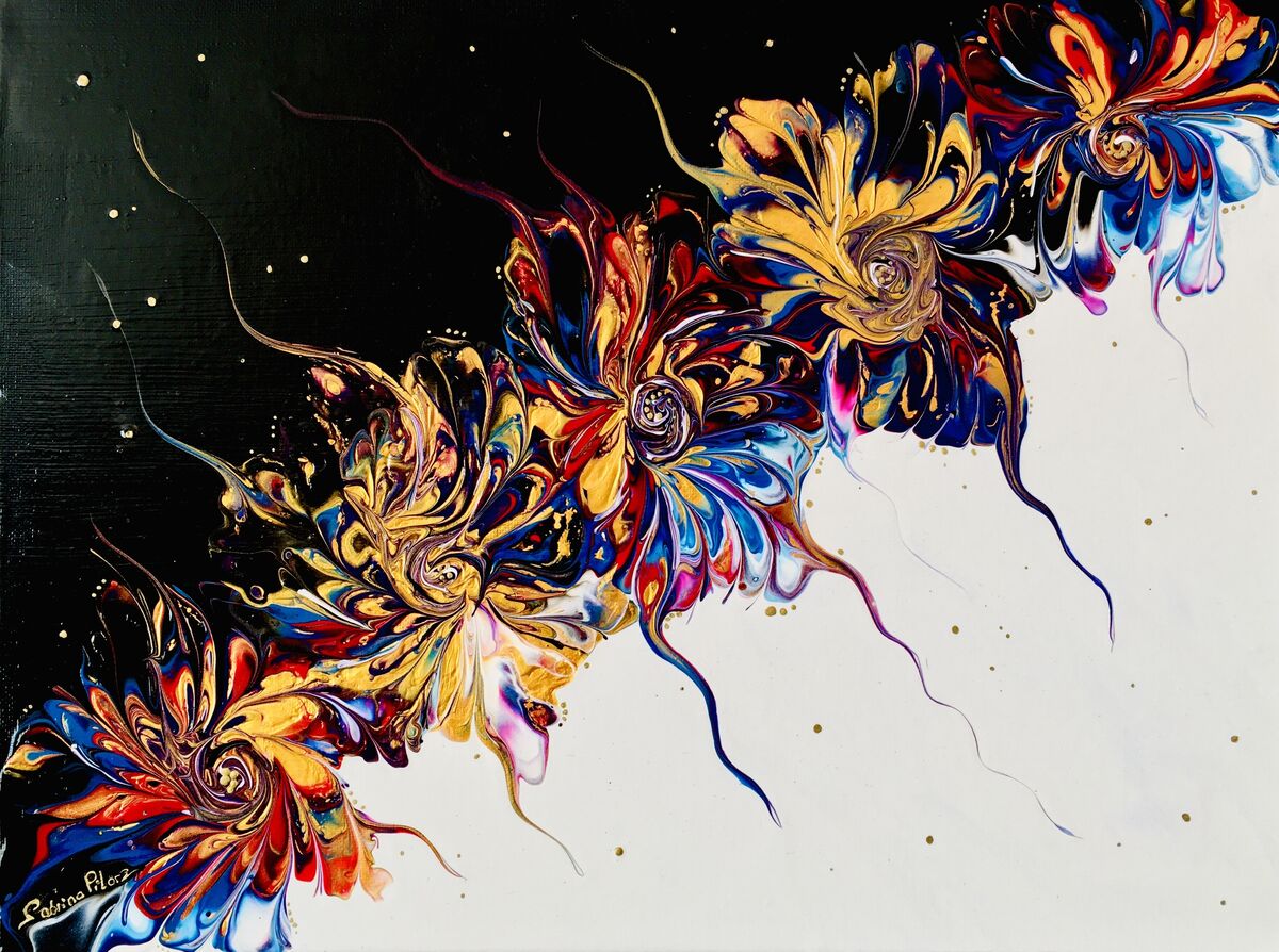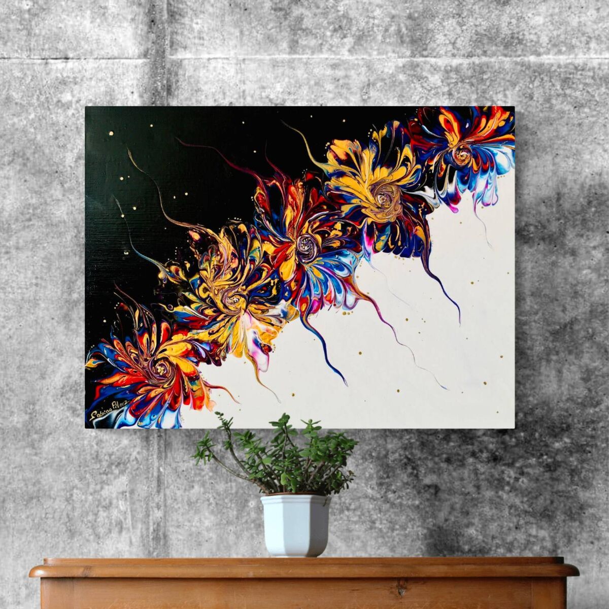 Peinture acrylique et vernis brillant sur châssis bois entoilé coton. Œuvre originale et unique, signée de l’artiste Sabrina Pilarz.
