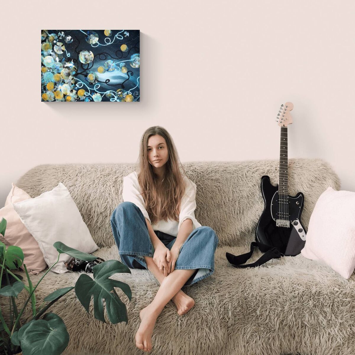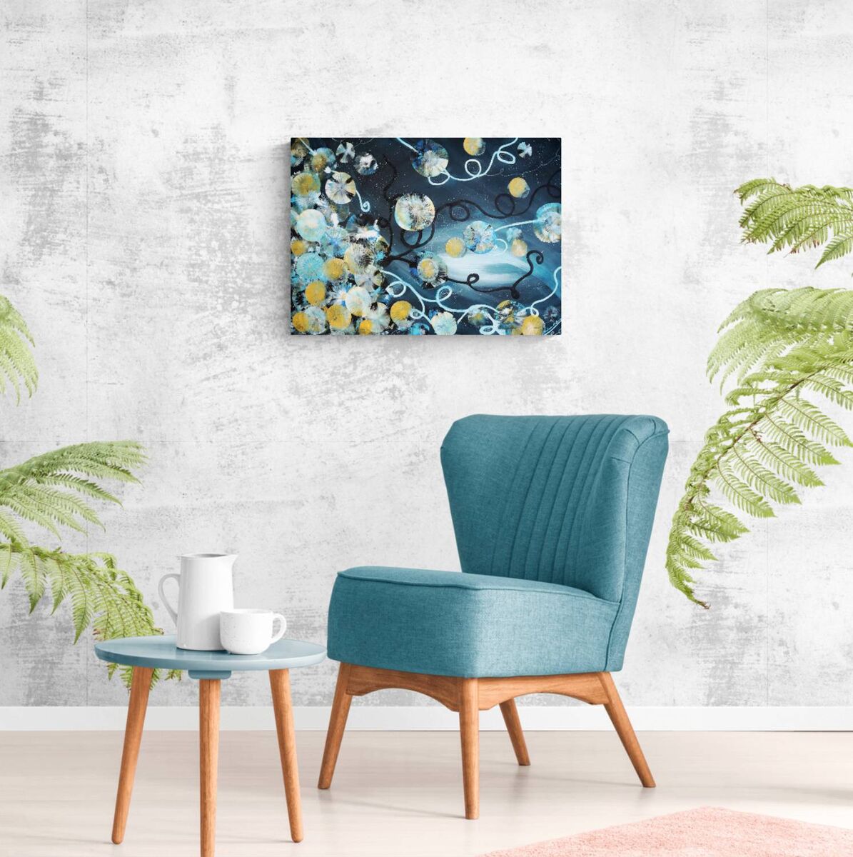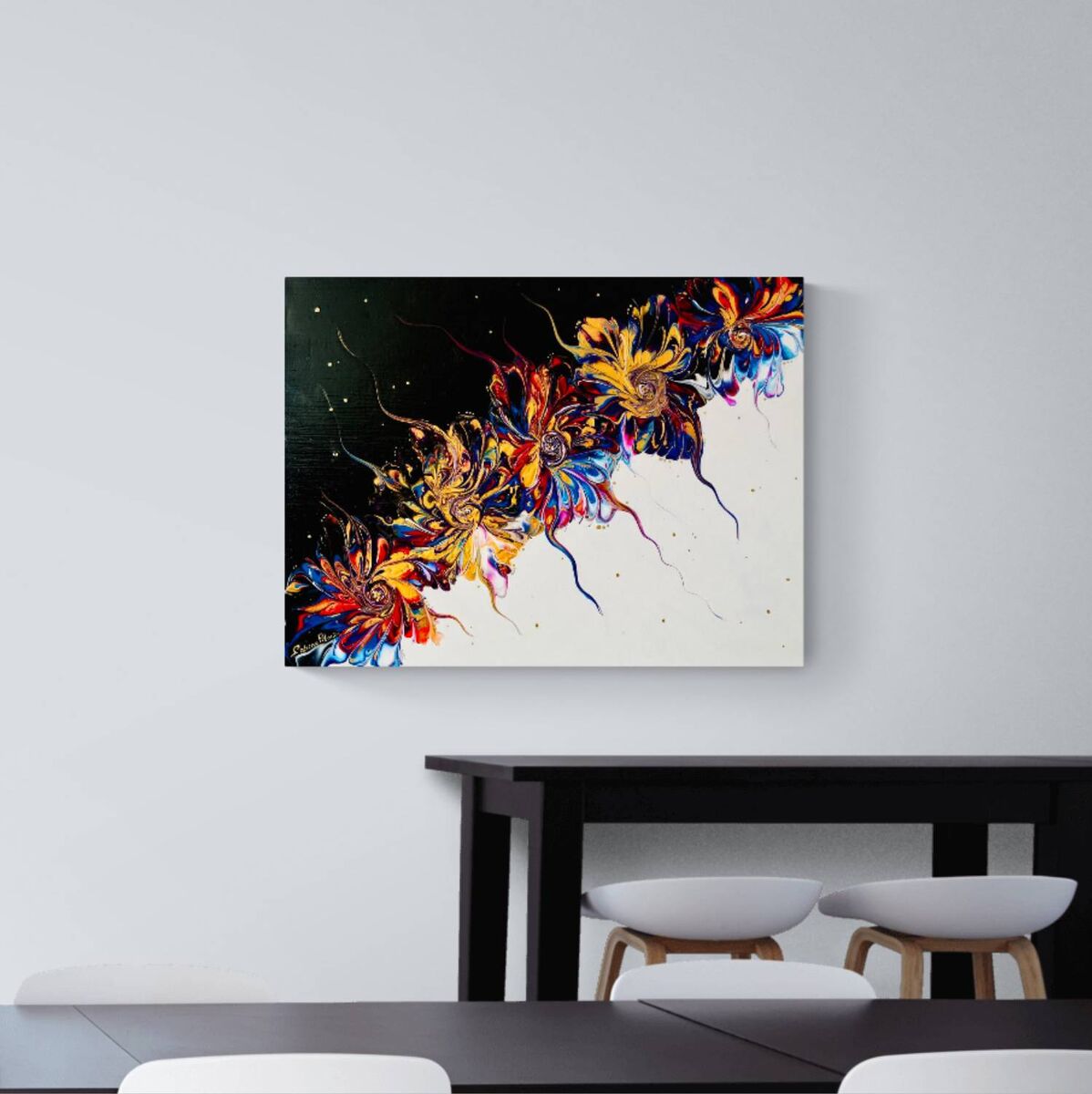 Peinture acrylique et vernis brillant sur châssis bois entoilé coton. Œuvre originale et unique, signée de l’artiste Sabrina Pilarz.